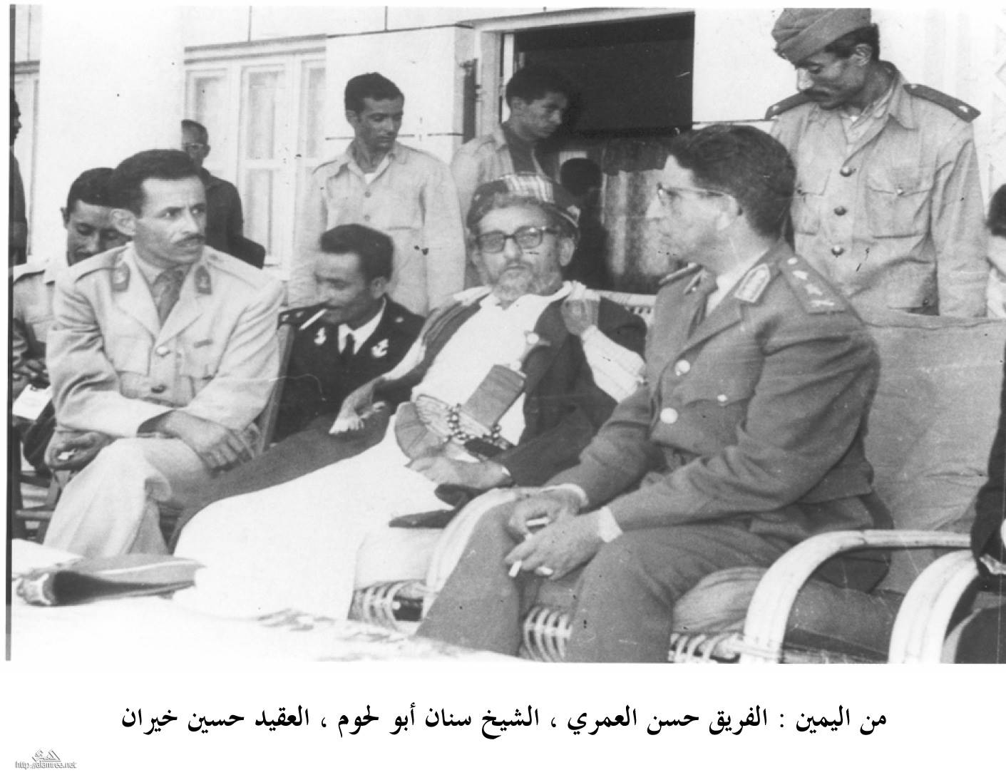 في الايام الاولى للثورة الشيخ سنان ابولحوم وعلى يمنية الرئيس عبدالله السلال |