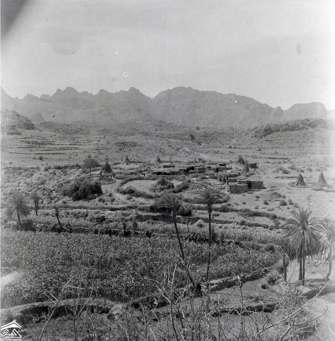 "قرية تقع على صخرة بالقرب من تعز. الحقول في السهل."