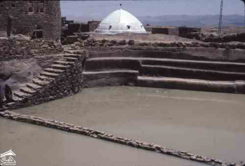 صهريج قرب الجامع الكبير وفي المقدمة احواض الماء وفي الخلفه قبة