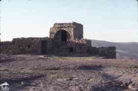 مبنى حجري مهدم. جزء واحد له قوس