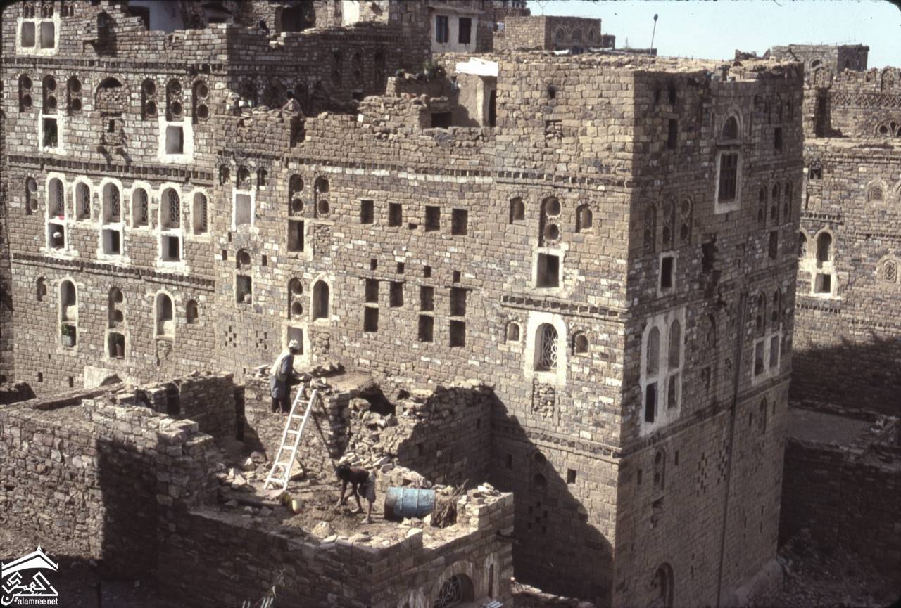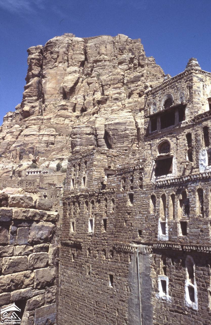ثلا القلعة. مباني عند سفح نتوء صخري-1971م للمصوره الطبيبة كلودي فايين