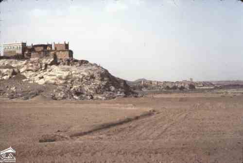 ثلا: الحصن. نتوء صخري في الخلفية. 1971م صورة للطبيبة كلودي فايين