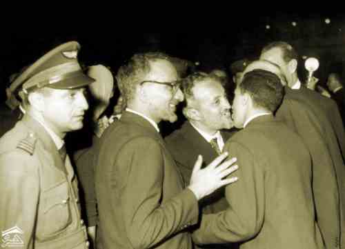 محمد محمود الزبيري وعبدالرحمن الارياني وعبدالله جزيلان اثناء استقبالهم في بيروت