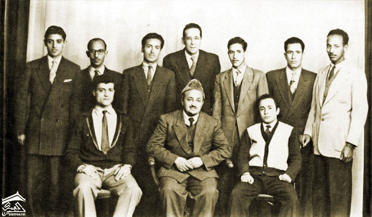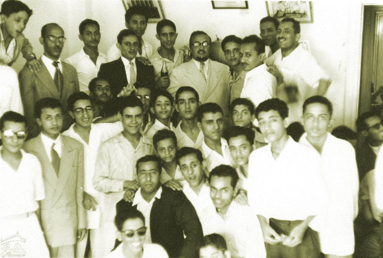 محمد محمود الزبيري مع مجموعه من الطلاب اليمنيين  في القاهره 1953-1954م