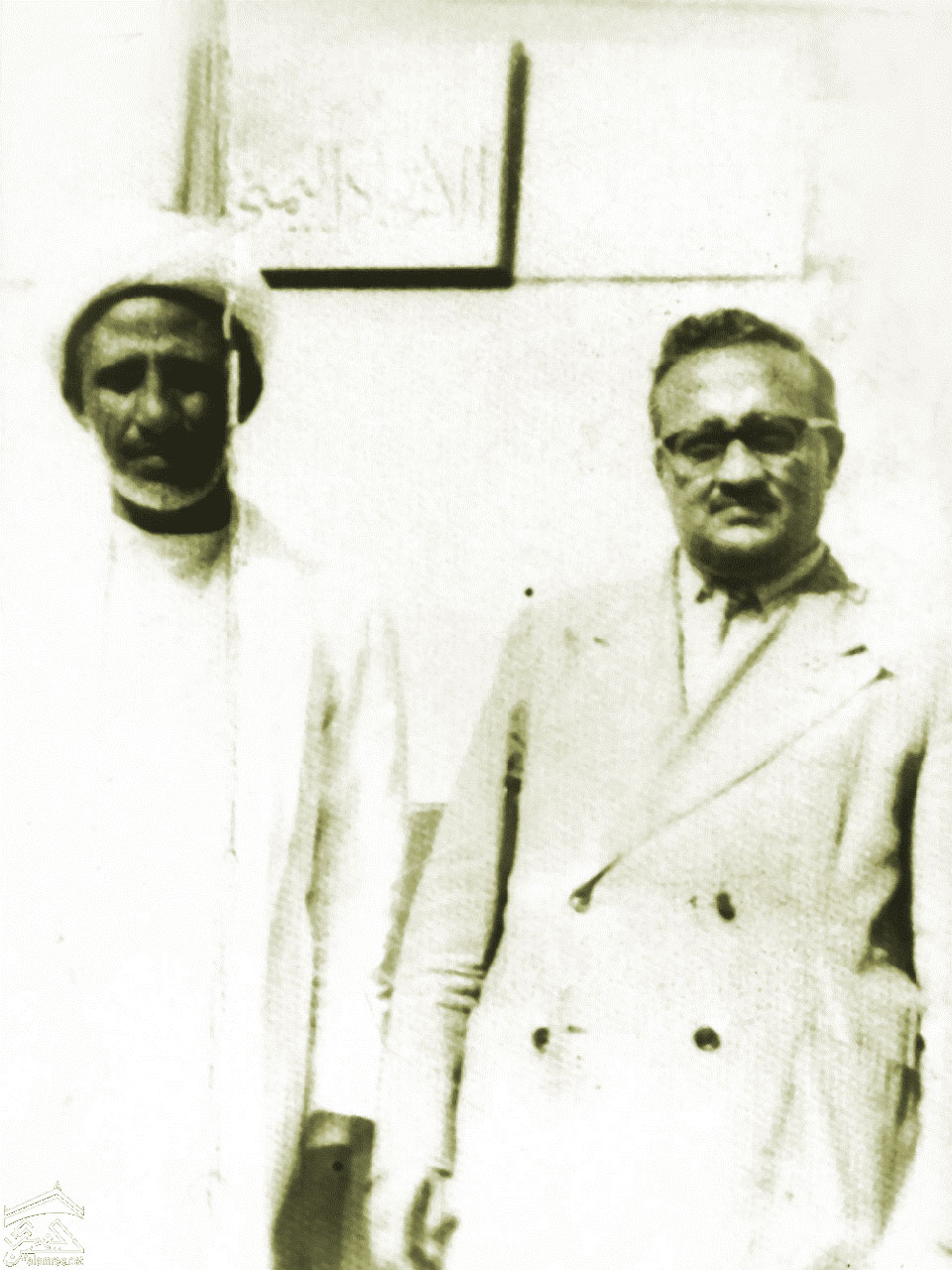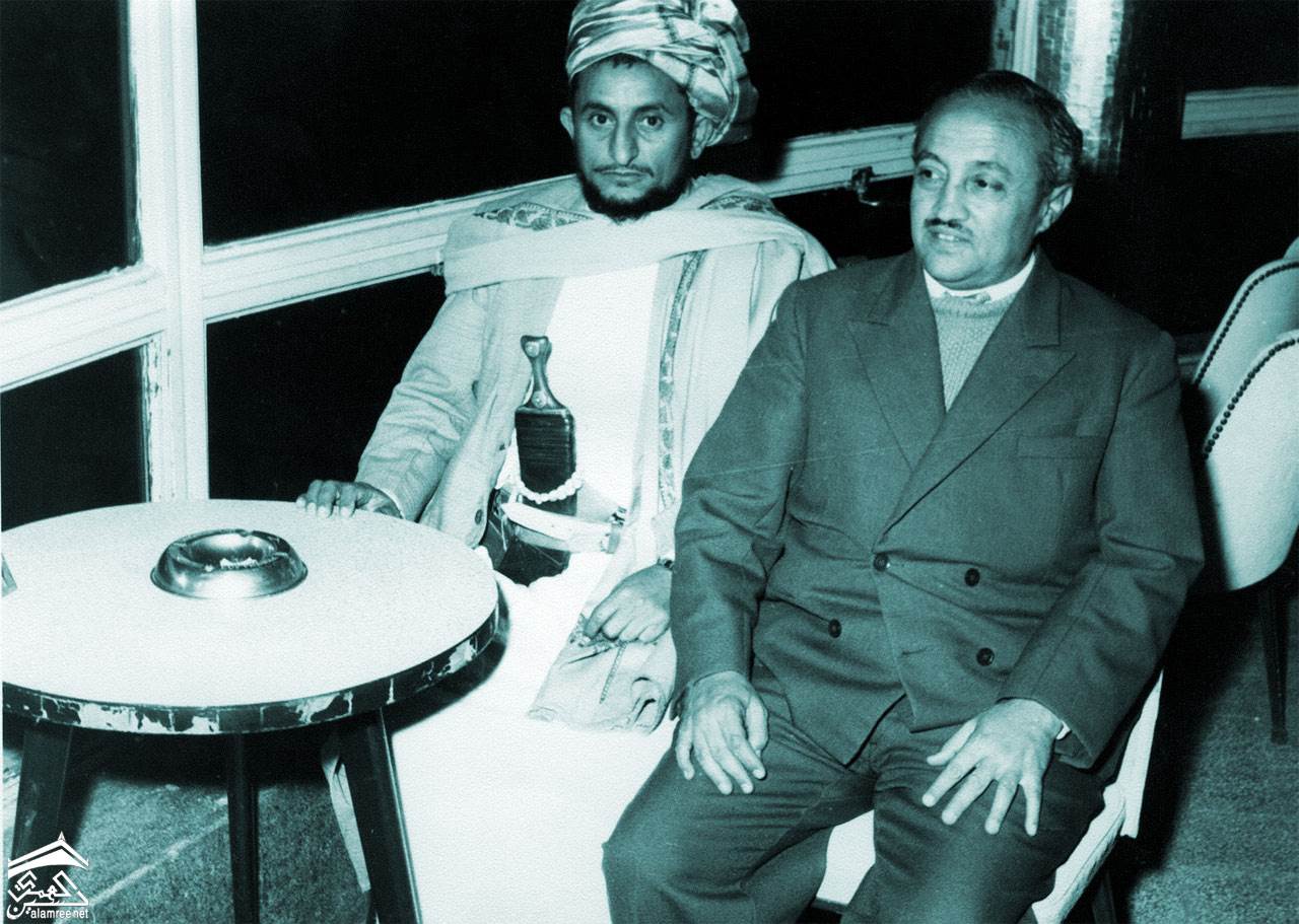 محمد محمود الزبيري مع الدبلوماسي والأديب السوري عمر بهاء الدين الأميري، بالأرجح في عام ١٩٥٣م