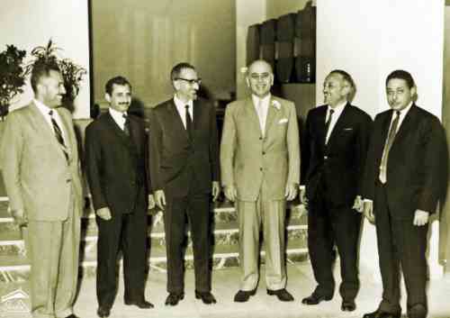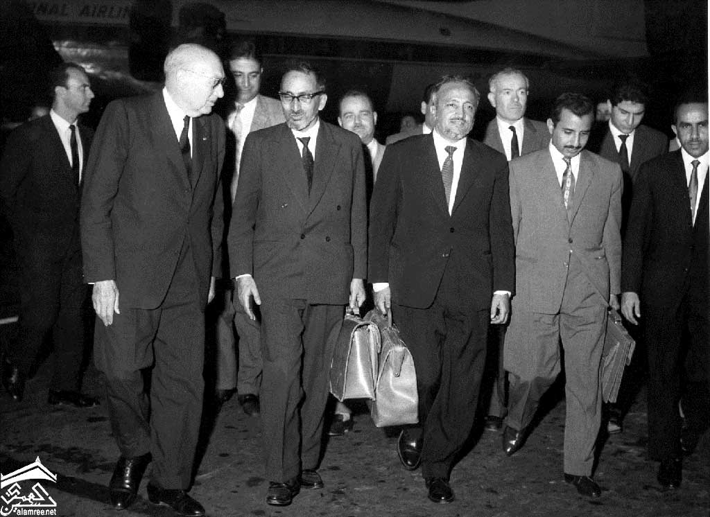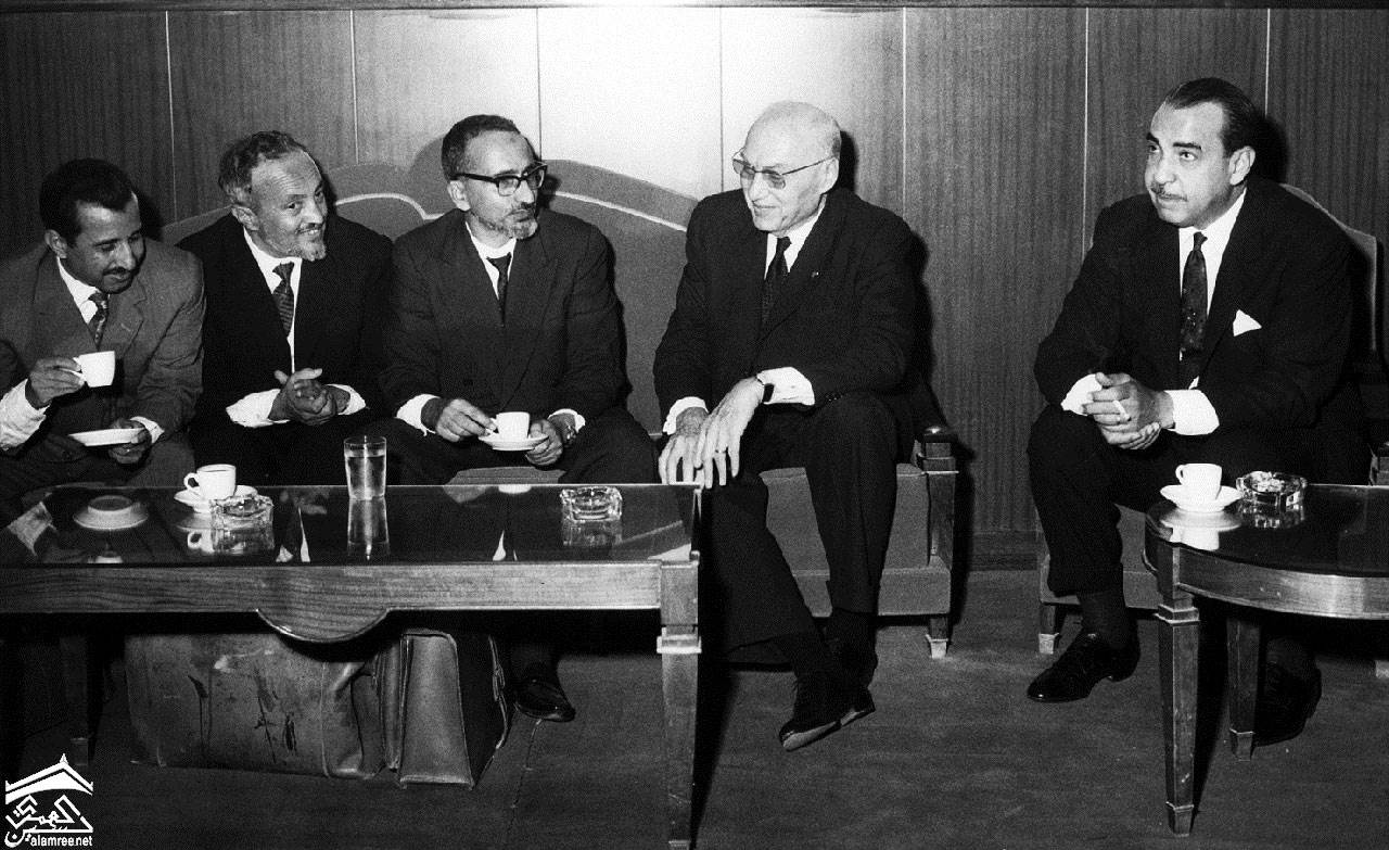 من يمين المشاهد  صبري حمادة و صائب سلام وعبدالرحمن الإرياني ومحمد محمود الزبيري و عبد الله جزيلان
