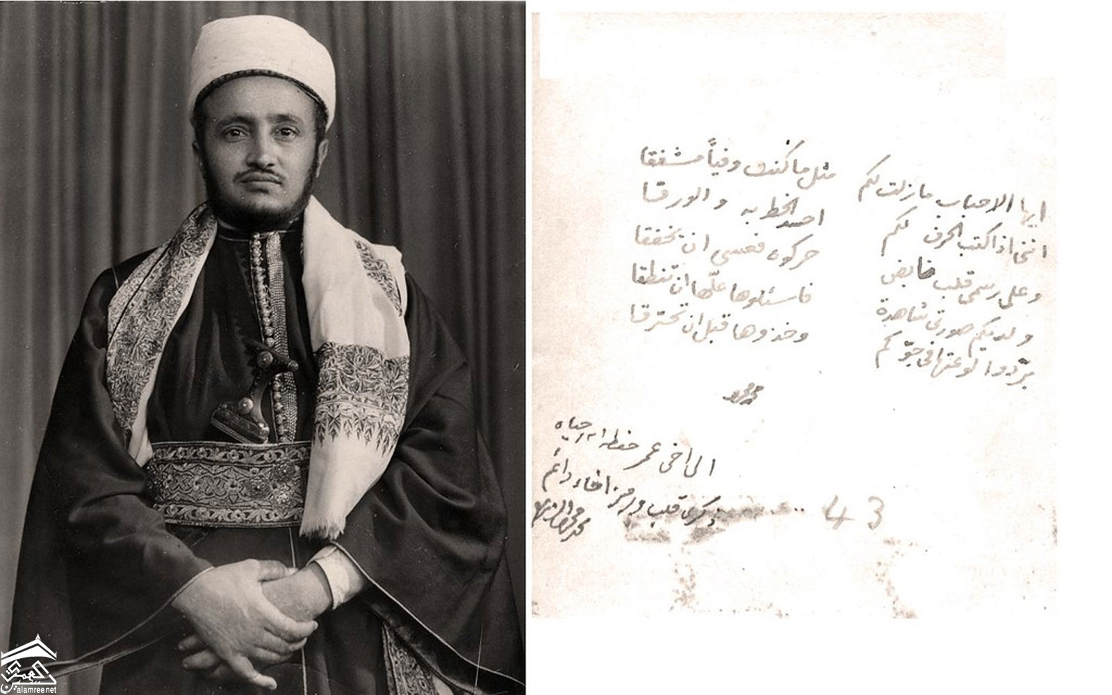صورة مهداة الى الدبلوماسي والاديب السوري عمر بهاء الدين مع ابيات شعر لمحمد محمود الزبيري بالأرجح في عام ١٩٥٣م
