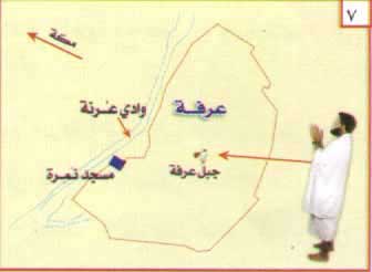 ، ويسن أيضاً بعد أن يرمي الجمرة الوسطى أن يتقدم عليها ويجعلها عن يمينه