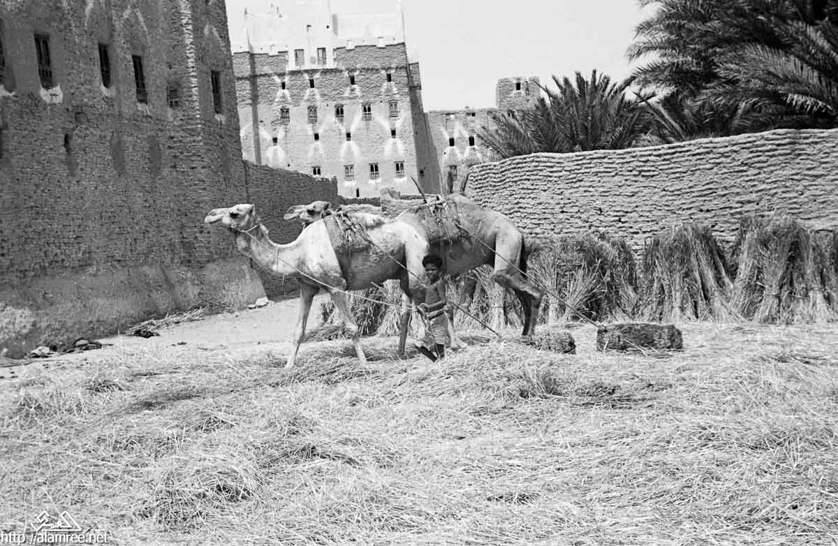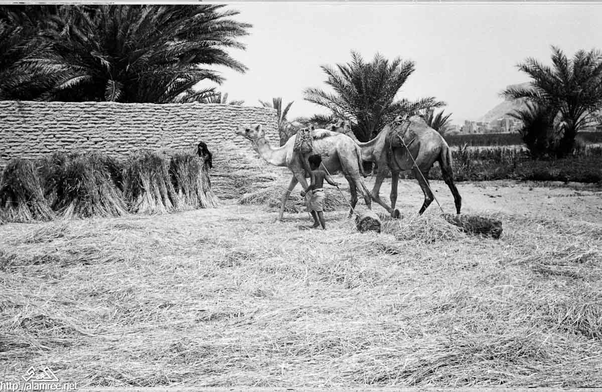 عملية فصل الحبوب من السنابل بواسطة الجمال تجر خلقها اثقال سيئون عام 1946