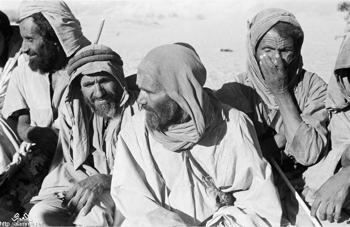 صورة لأحد شيوخ بدو الصيعر في منوخ منطقة ريدة الصيعر . عدد قليل من الناس تقف في الخلفية