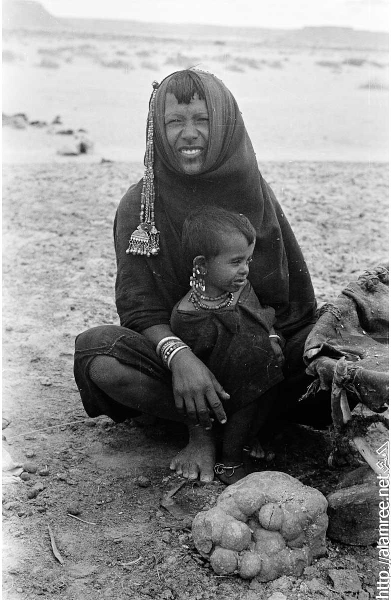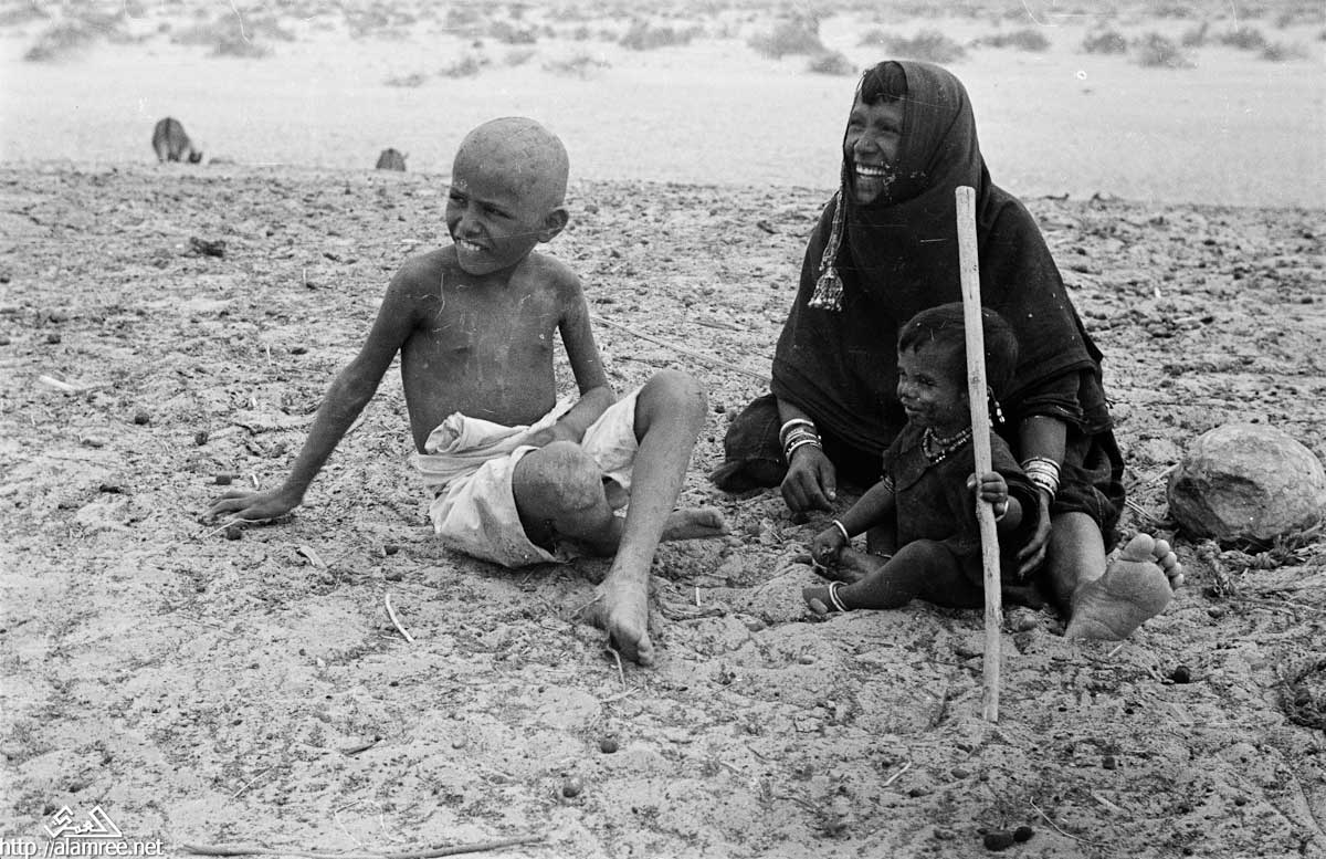 صوره لامرأة من بدو الصيعر يجلس مع صبي صغير وطفل في منوخ