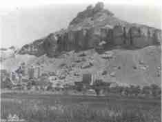 حقول القمح والبلدة عند سفح صخرة بين حنين والقطن