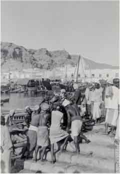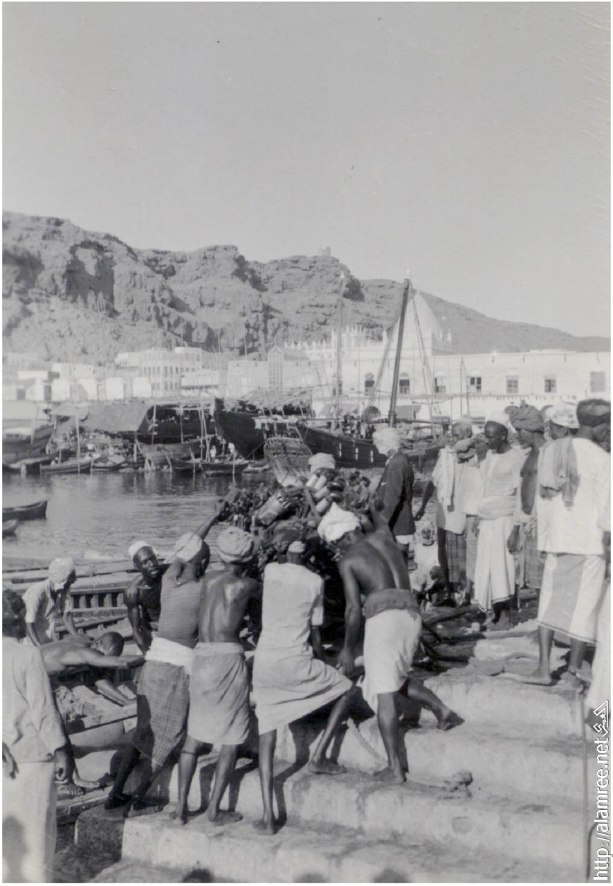 المكلا وعملية انزال البضائع في الميناء في منتصف القرن الماضي