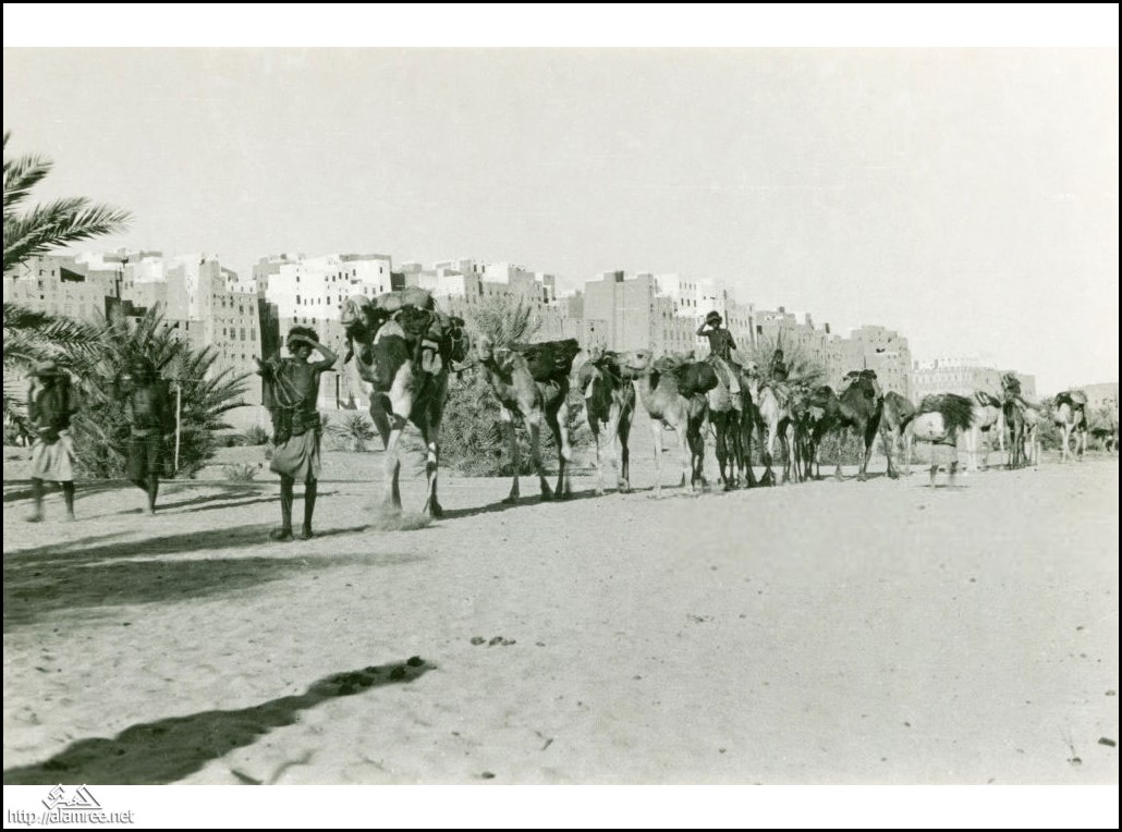 قافلة من الجمال في شبام عام 1929م |