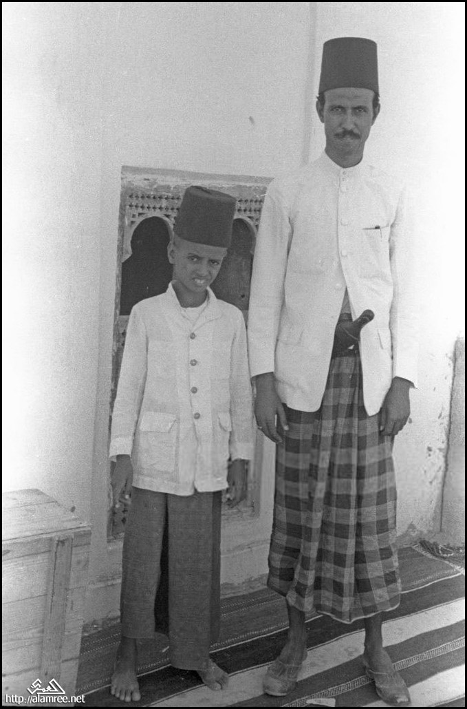 أبو بكر في قاف وابنه سقاف ، حضرموت ، اليمن ، حوالي عام 1936 |