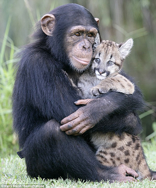 شمبانزي تصبح مربية لاسد صفير في حديقة الحيوان بالولايات المتحده الامريكية