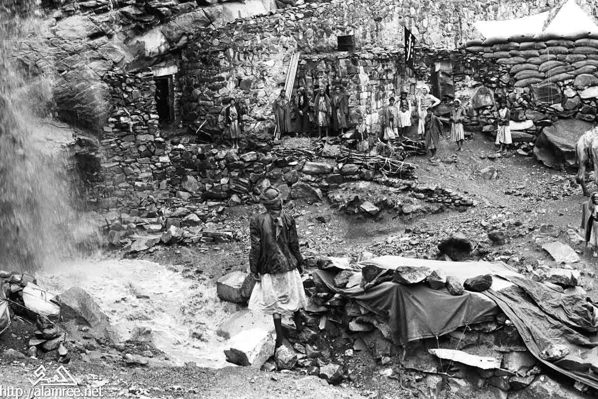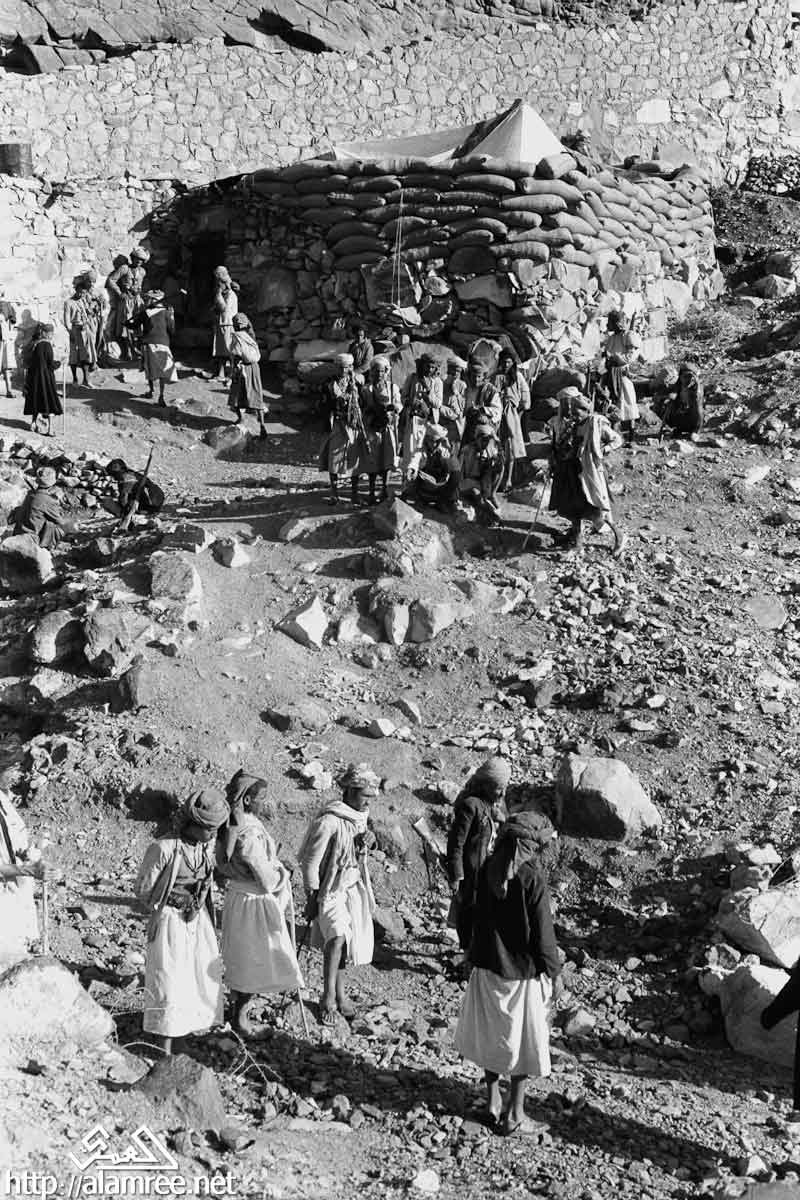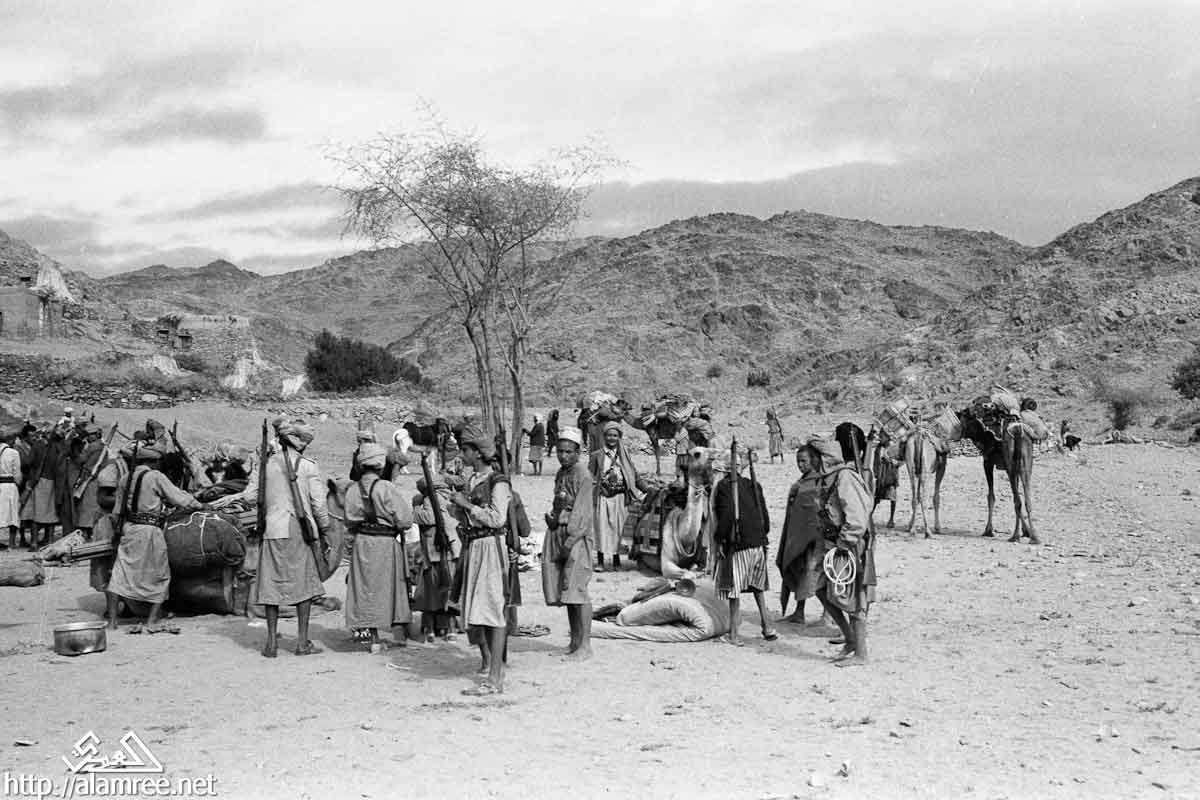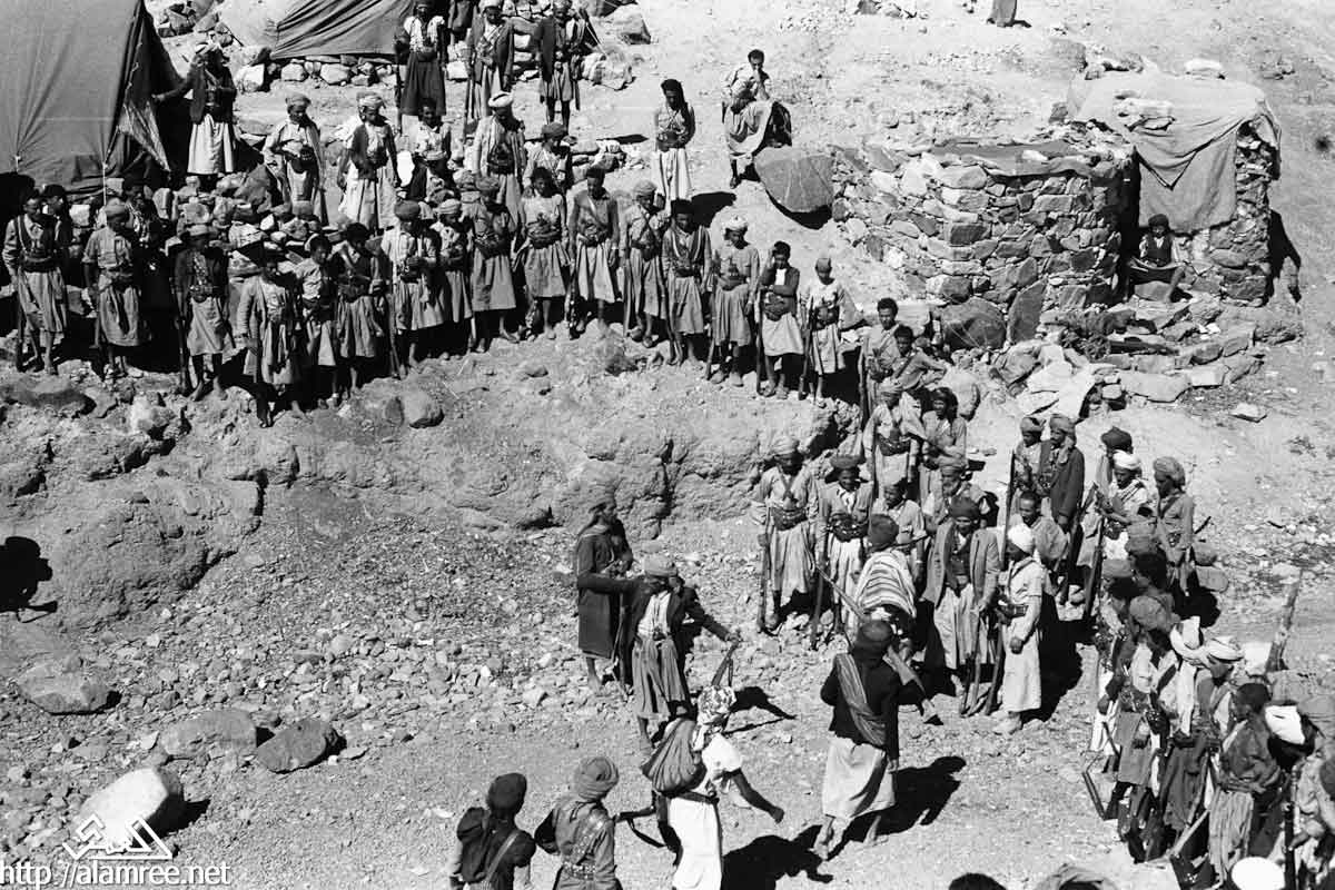 صوره لحشد من الرجال يرقصون في احد معسكرات الملكيين