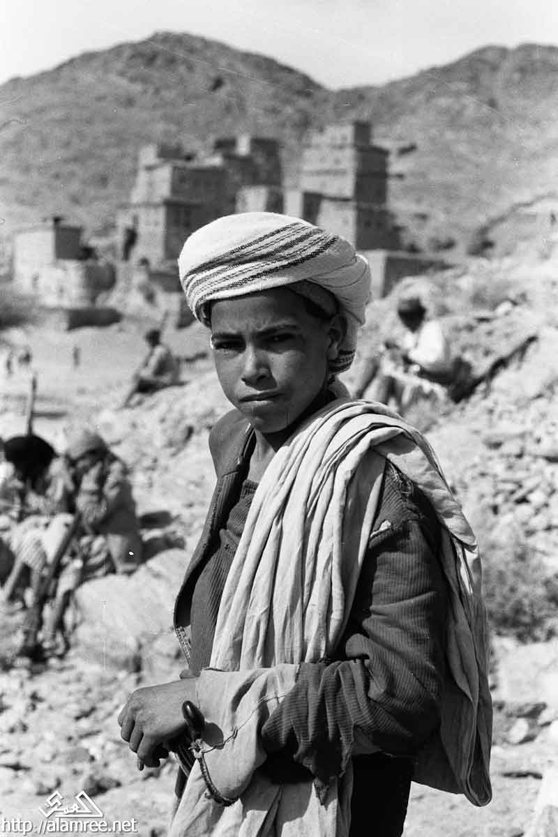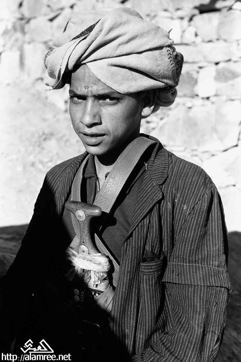 صورة لطفل من جنود القوات الملكيه مع خنجر مغمد في حزامه