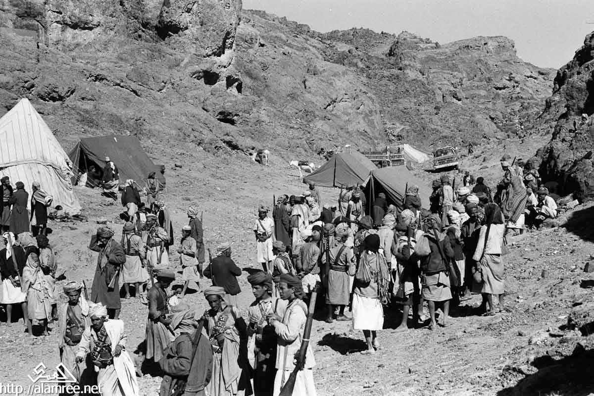 صوره لوادي يعسكر فيه القوات الملكيه ويلاحظ خيام والناس يمشون بينها