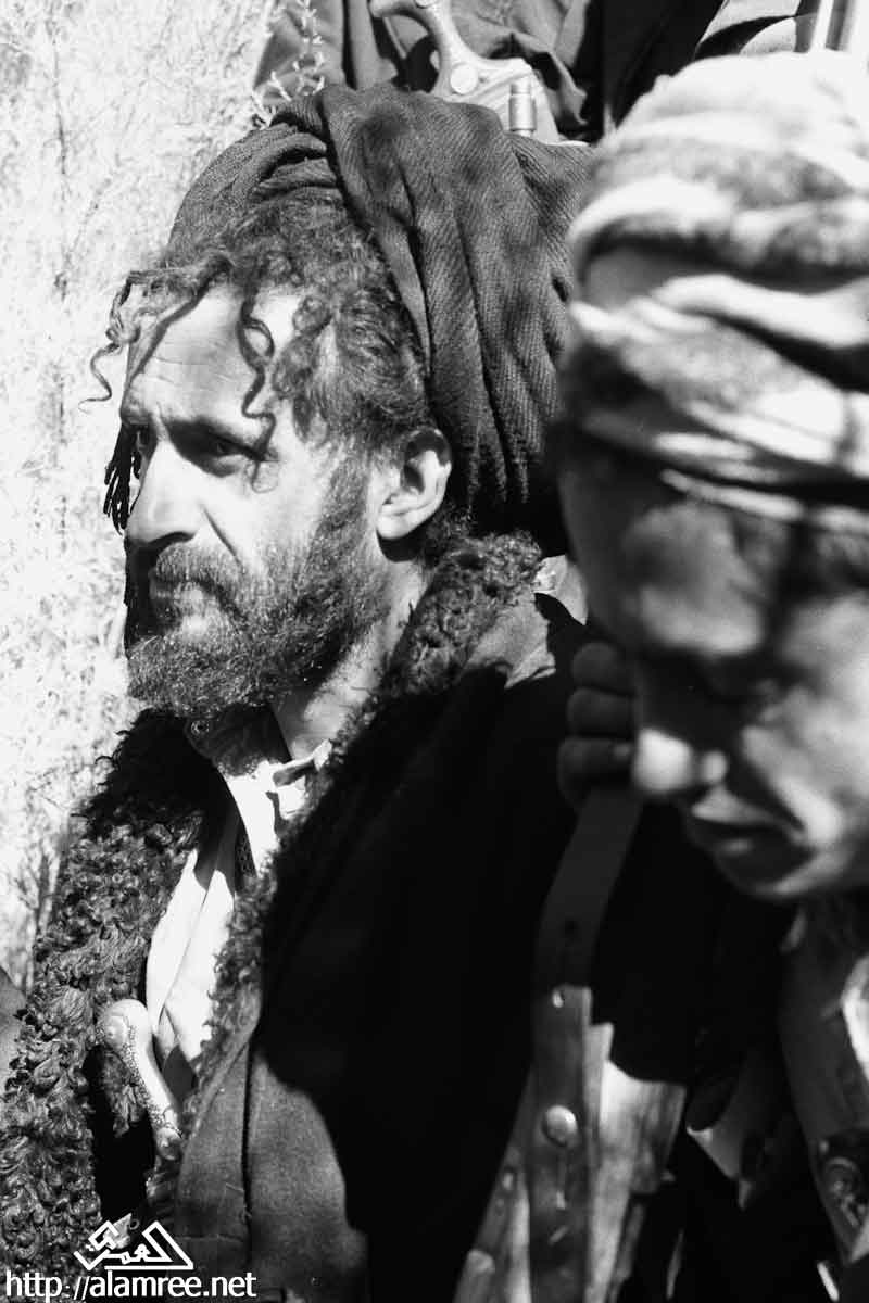 صوره لعدة رجال مسلحين ببنادق والخناجر مغمده من داخل احد معسكرات الملكيين
