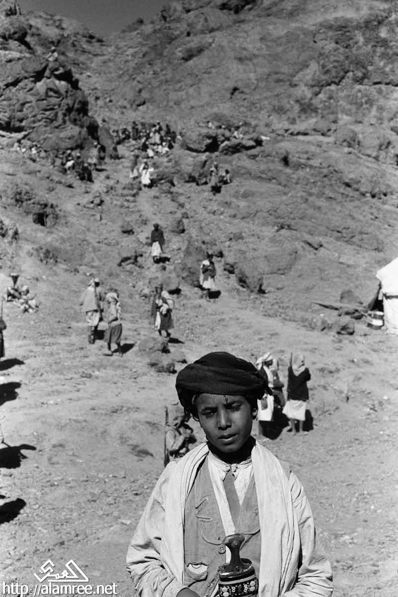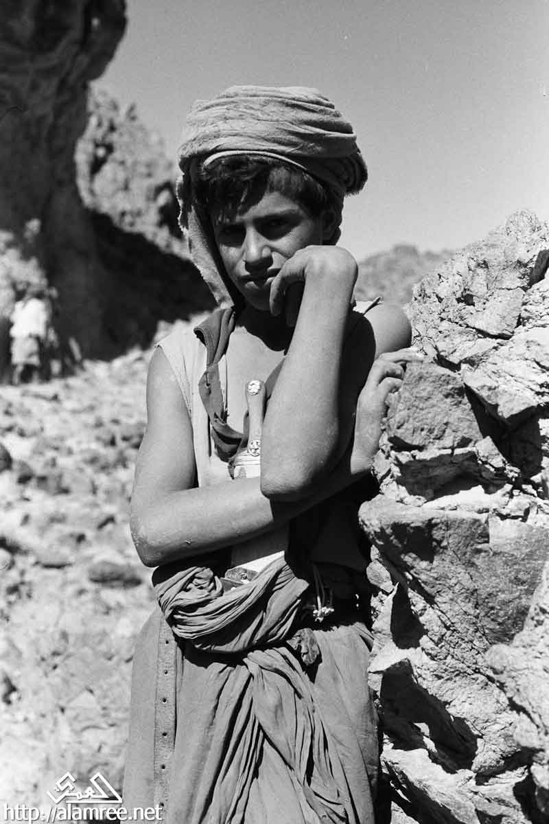 صورة لصبي بخنجر مغمد في حزامه ومنحدر الجبل في الخلفية ومعلوم استخدام الملكيين للاطفال في معاركهم
