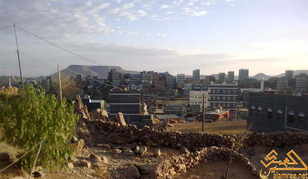 ال عمر والهجر وفي الخلفية جبل حبه يافع