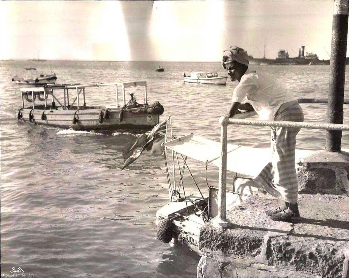 التواهي الميناء في ستينيات القرن الماضي وفي مقدمه الصوره احد اللنشات