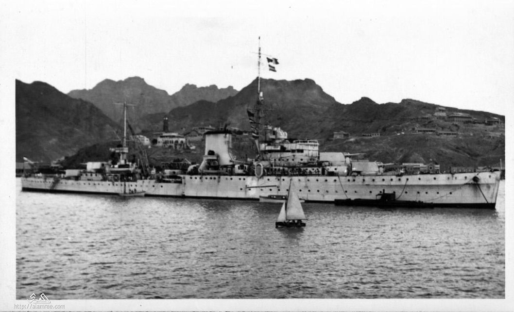 ميناء عدن وسفينة تجاريه بخاريه وثلاث زعايم شراعيه |