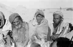 عرض لامرأة وفتاة تحمل طفل صغير يجلسوا على الأرض . وهم من جماعة البدو الصيعر في منوخ