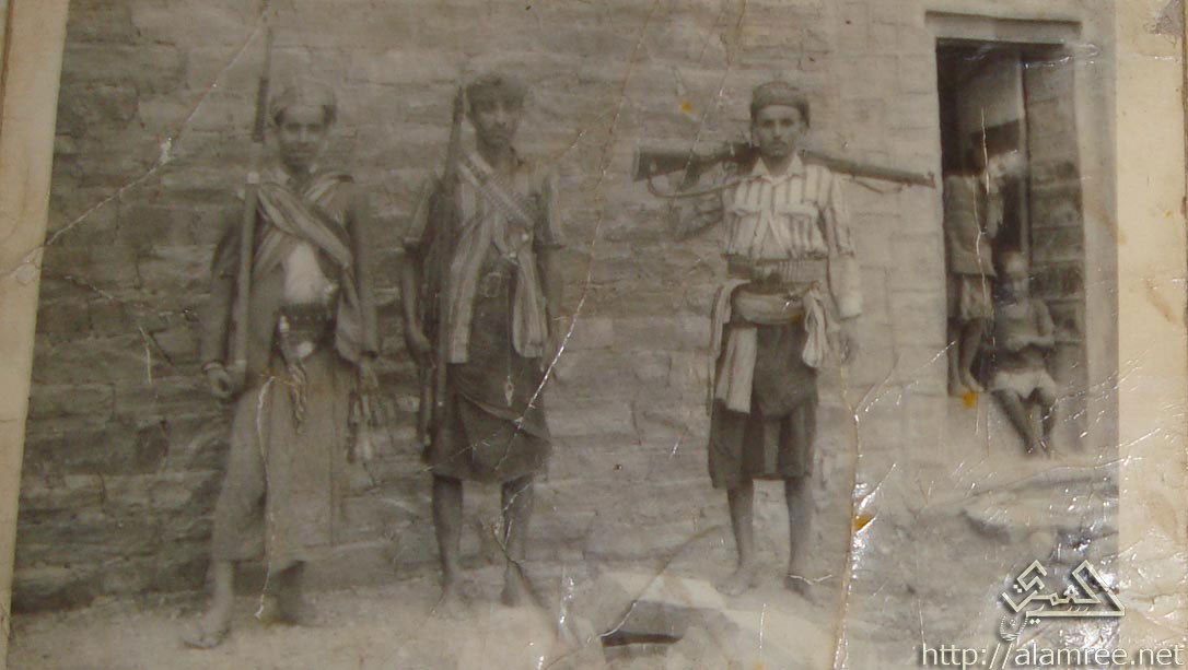 العم صالح حسين العمري يرحمه الله وفي الوسط العم محمد حسين العمري والاخ عبدالله يحي السيلاني ال عمرو لبعوس يافع في 1965م